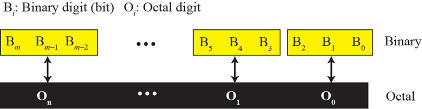 二进制从小数点开始,每三位转换为一位八进制数