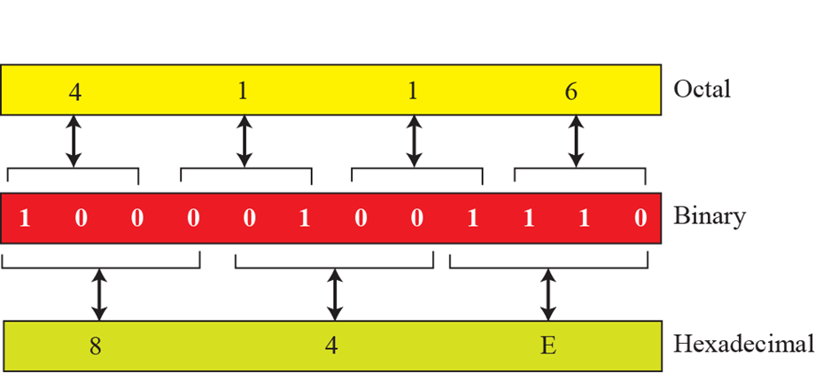 以二进制为中介系统,进行八进制和十六进制的转换
