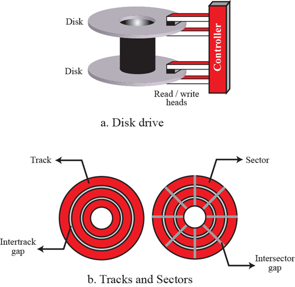 磁盘由磁片叠加而成,信息通过每一个磁片的读/写磁头读写磁介质表面来进行读取和存储。 采用随机存取方式。