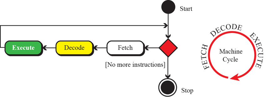 简化的周期包括三步:取指令,译码,执行。