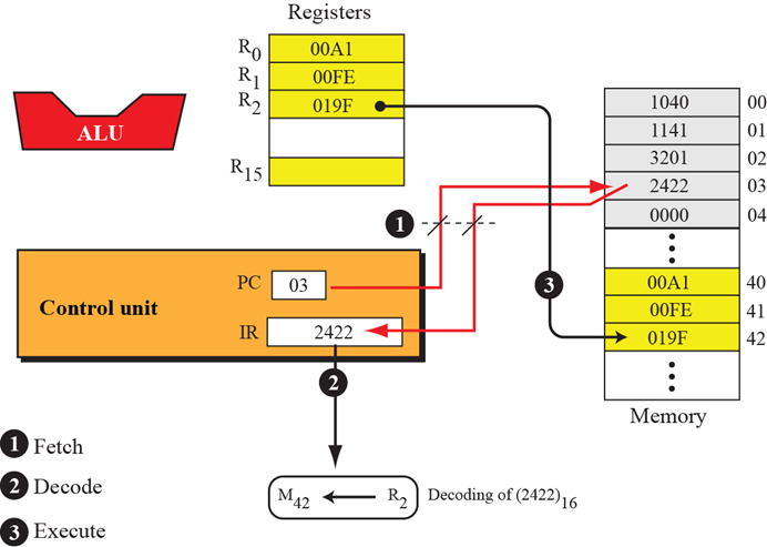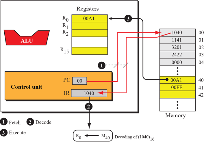 把内存M40的内容装入寄存器R0( R0 ← M40 )