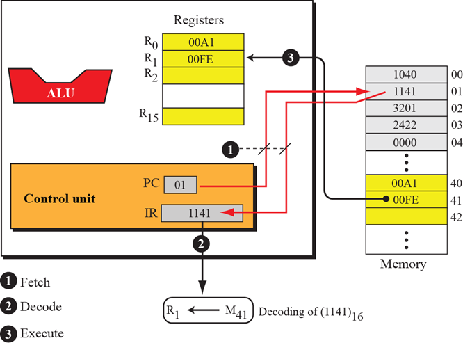 把内存M41的内容装入寄存器R1( R1 ← M41 )