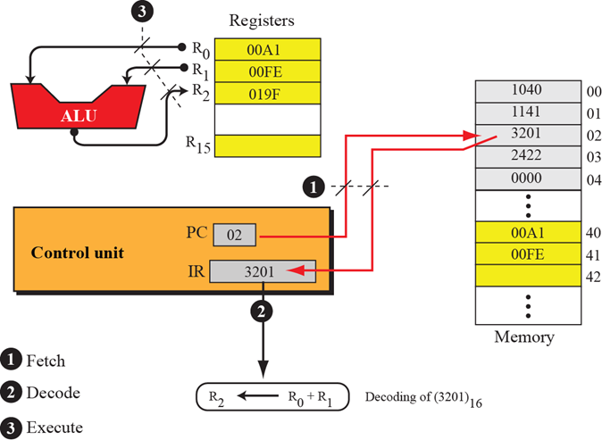 相加R0和R1的内容,结果放入R2中( R2 ← R0 + R1 )