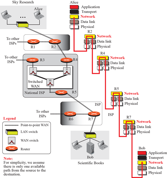 从源到目的地有不止一条路线,网络层的责任是在这些可能的路线中,根据一些特定的策略找到最优路线。