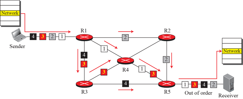 路由举例:不同的数据包传输路径