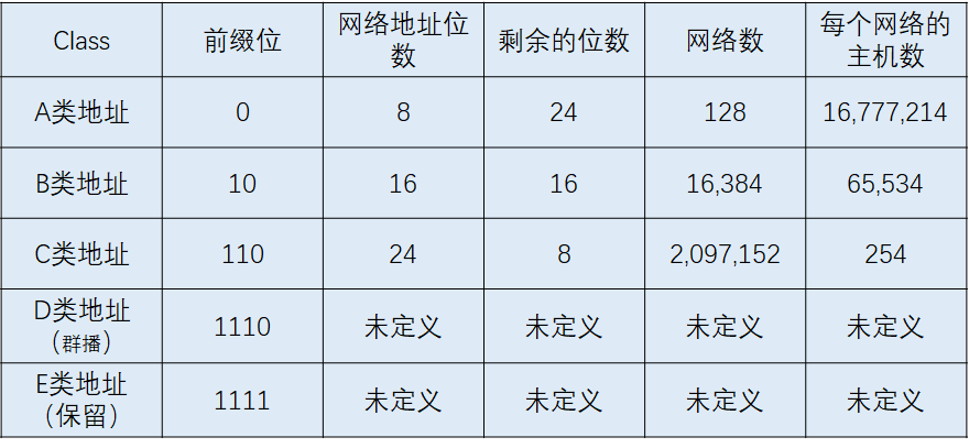 IP地址可以分成如下几类