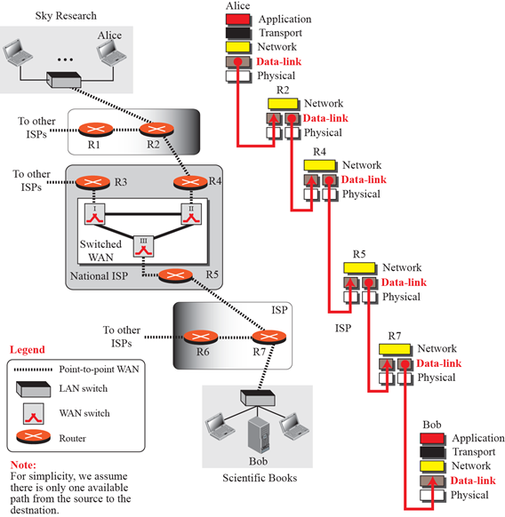 数据链路层的通信是节点对节点的。