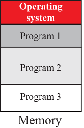 - 单道程序:大多数内存装载单一的程序,一部分装载操作系统。