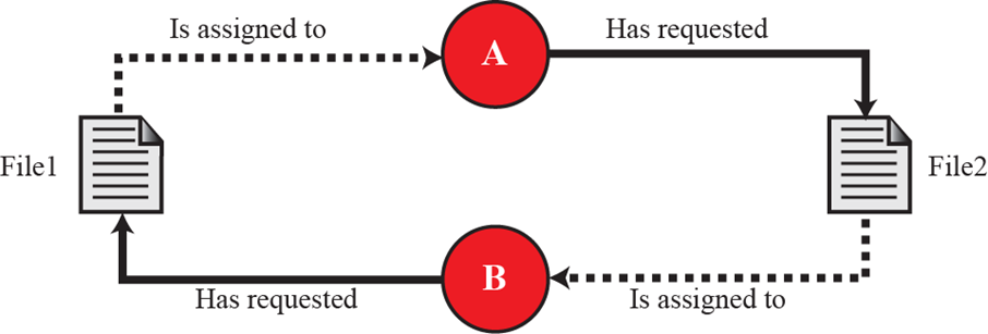 互斥:一个资源只能被一个进程占有。 资源占有:一个进程占有一个资源,即使在获取其他资源之前无法使用它。 抢先:操作系统不能临时对资源重新分配。 循环等待:所有的进程和资源包含在一个循环里。饿死