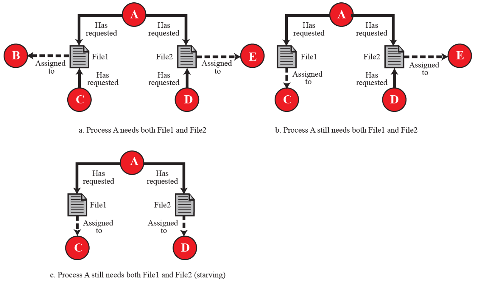 饿死是一种与死锁相反的情况。发生在当操作系统对进程分配资源有太多限制的时候。