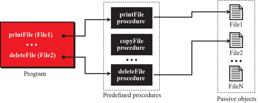 过程式模式下的程序使用被称为数据或数据项的被动对象,作为被动对象的数据存储在计算机的内存中,程序操纵它们。