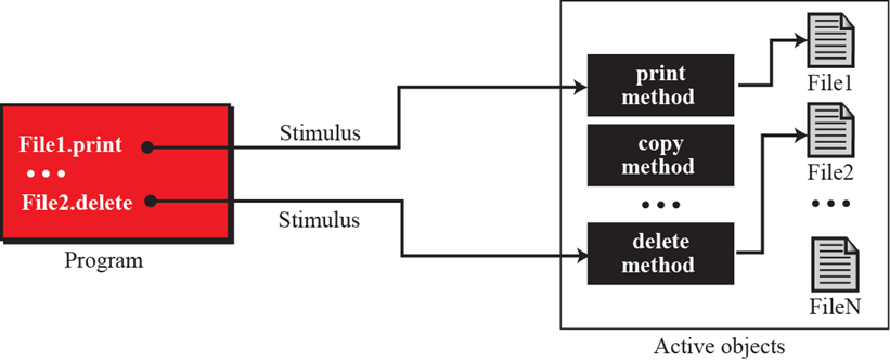 在过程式模式中,程序是操纵被动对象的主动主体。