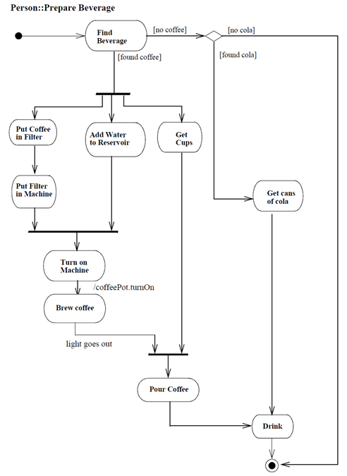 活动图显示了一个复杂操作的分解或一个过程分解成一组简单的操作和过程。