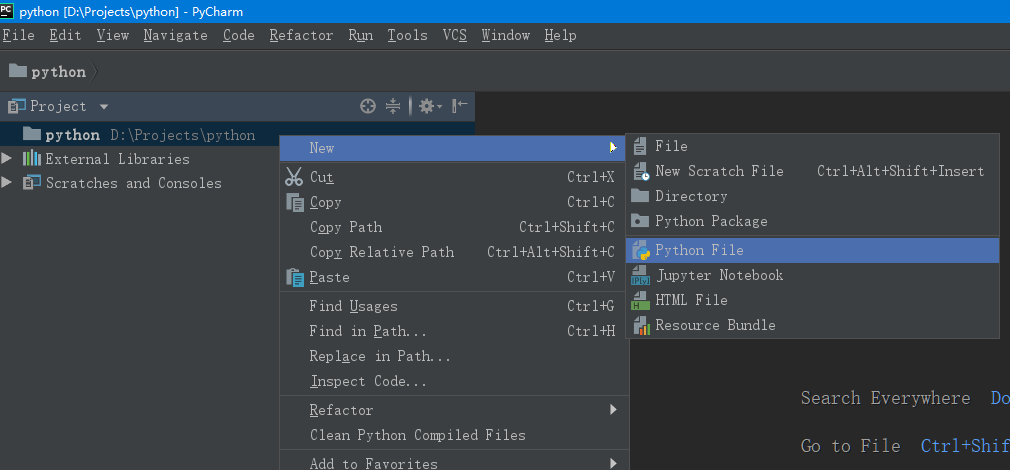 在项目文件夹中新建一个Python文件: