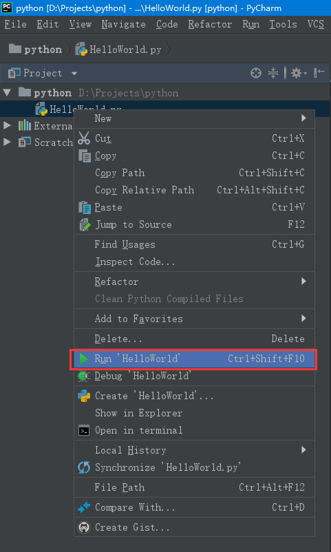 使用python执行HelloWorld.py文件: