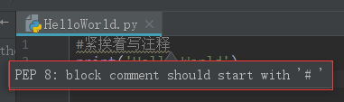 例如在编写注释时,#后面紧挨着写注释的内容,会有如下的提示: