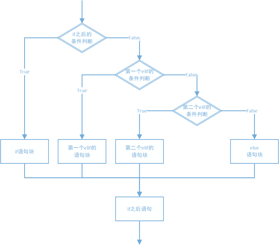 不论执行了哪一个语句块,执行完毕后,整个if-elif-else语句结束,继续执行if语句之后的语句。